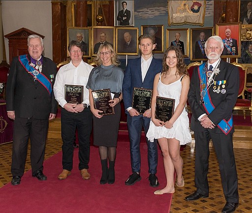 Fr.v. Bengt Hammarberg, Anders för Katrin Klaup, mamma för Caijsa Hennemann, Carl Bengtström, Anastasia Ponomarenko och Ordensgeneral Åke Sköldberg
