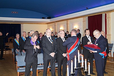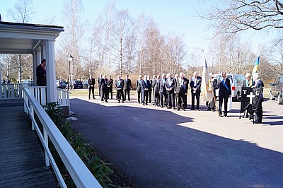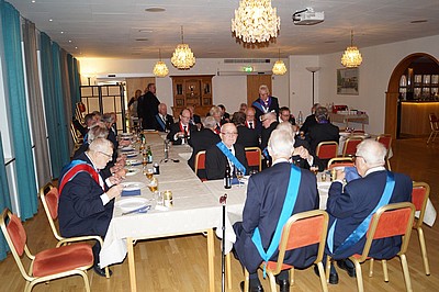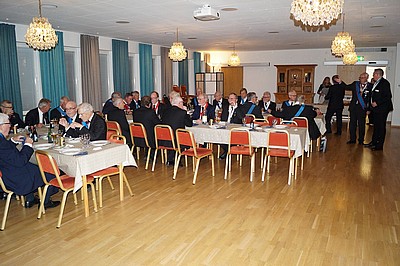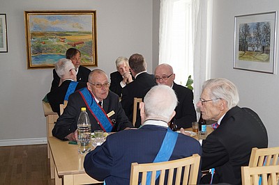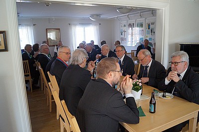Förberedelser inför av marsch till Kyrkan, där Bengt läser en dikt. Efter Parentationen avnjöts en god middag med tradition av pannbiff med lök och denna gång tårta till kaffet. På siste bilden språkar vår Ordensgeneral med Värmlands Styrande Mästare.