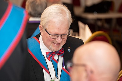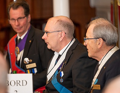 Han välkomnar de nya Kommendörerna samt uppmanar övriga Bröder att välkomna dem med en varm applåd.