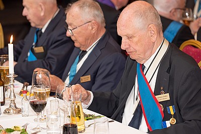 Efter att huvudrätten ätits håller vikarierande vOG talet till de nya innehavarna av Ordens VI:e grad.