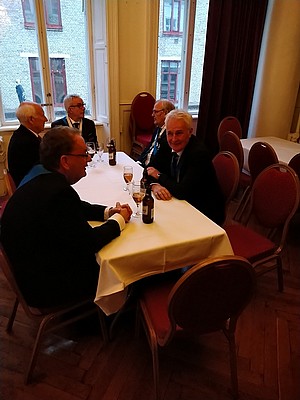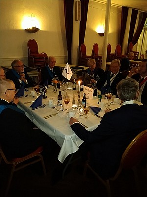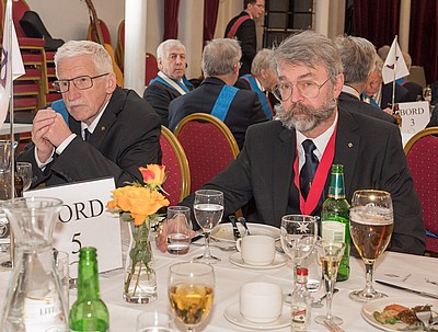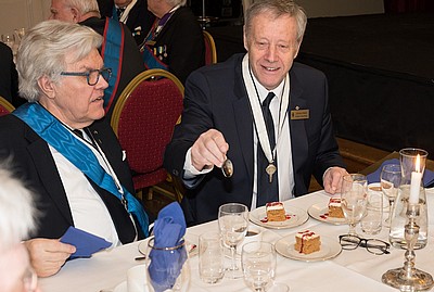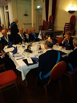 Vid måltidens början hälsar OG alla välkomna samt tackar för att de tagit sig tid att närvara vid Gradgivning och Parentation och för den insamlade kollekten, SEK 1.201. Han påminner om 125-årsjubileet som kommer att hållas 26 oktober på La Venue.