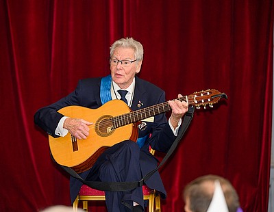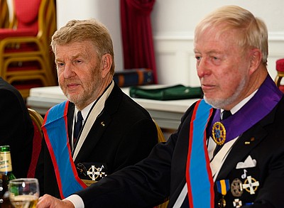 Han välkomnar de nya Kommendörerna samt uppmanar övriga Bröder att välkomna dem med en varm applåd.