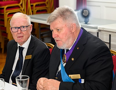 Vid måltidens början hälsar OG alla välkomna samt tackar för att de tagit sig tid att närvara vid Gradgivning och Parentation och för den insamlade kollekten, SEK 1.201. Han påminner om 125-årsjubileet som kommer att hållas 26 oktober på La Venue.