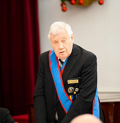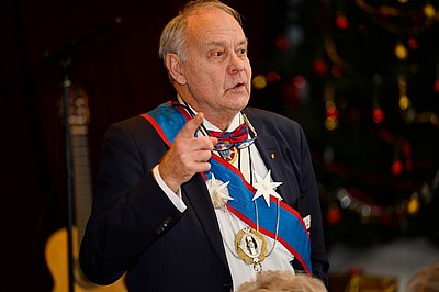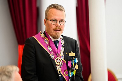 Han välkomnar de nya Kommendörerna samt uppmanar övriga Bröder att välkomna dem med en varm applåd.