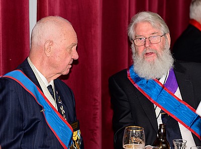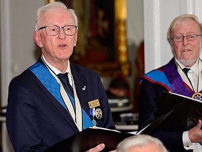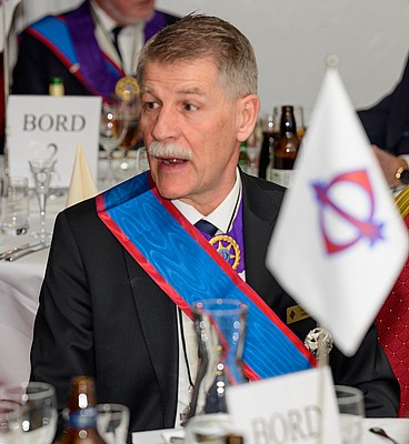 Han välkomnar de nya Kommendörerna samt uppmanar övriga Bröder att välkomna dem med en varm applåd.