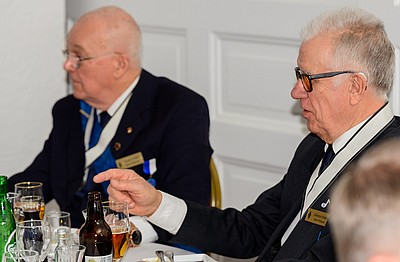 Vid måltidens början hälsar OG alla välkomna samt tackar för att de tagit sig tid att närvara vid Gradgivning och Parentation och för den insamlade kollekten, SEK 1.201. Han påminner om 125-årsjubileet som kommer att hållas 26 oktober på La Venue.
