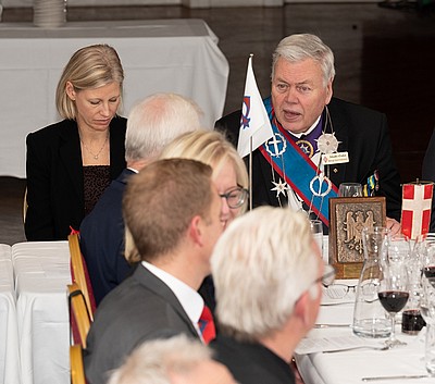 Efter måltiden talar vOG till recipienderna och säger bland annat att Riddarna är ett 900 år gammalt begrepp, att de först fanns i Frankrike och var ett kulturbegrepp och att man än idag talar om Ridderlighet.